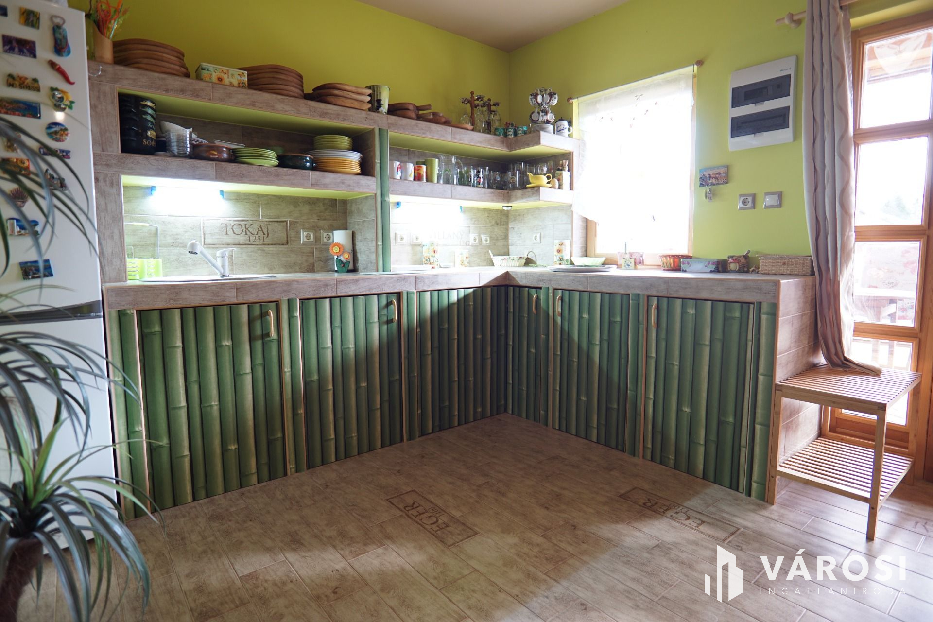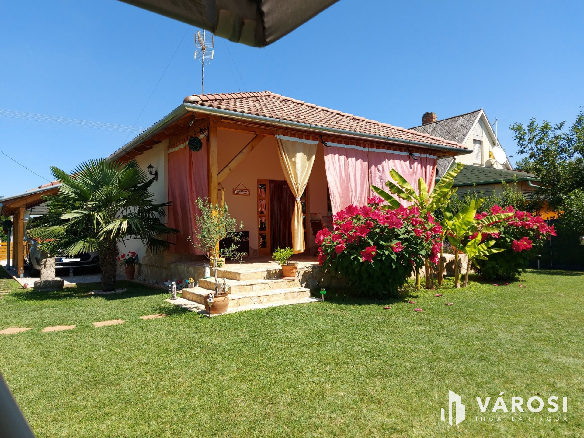 Az ingatlanban belépve egy nagy közösségi térbe, az amerikai konyha nappaliba érkezünk, melyből minden helyiség megközelíthető. Az utcafronton kialakításra került 2 külön bejáratú szoba, mellettük pedig a külön fürdő és a külön mellékhelység. Visszatérve a nagy térrel rendelkező közöségi térbe mely 36.5m-es, léphetünk ki a a fedett teraszra melynek a nagysága 22m2. Az épületbe bevetésre került a víz, a villany valamint a szennyvíz, a gáz pedig telekhatáron megtalálható. Fűtésről egy központilag elhelyezett nagy teljesítményű, öntöttvas kandalló gondoskodik. Az udvar igényesen parkosított, valamint még egy melléképület is található a telek hátsó részén. Gépkocsi parkolása az udvarba, fedett beálló alatt megoldott. A ház kamerarendszerrel felszerelt. Ha Ön szeretne egy csendes utcában, de nem túl távol a Balatontól egy jó kis ingatlant, amit akár télen-nyáron bármikor használhat, akkor ez egy jó választás lehet.