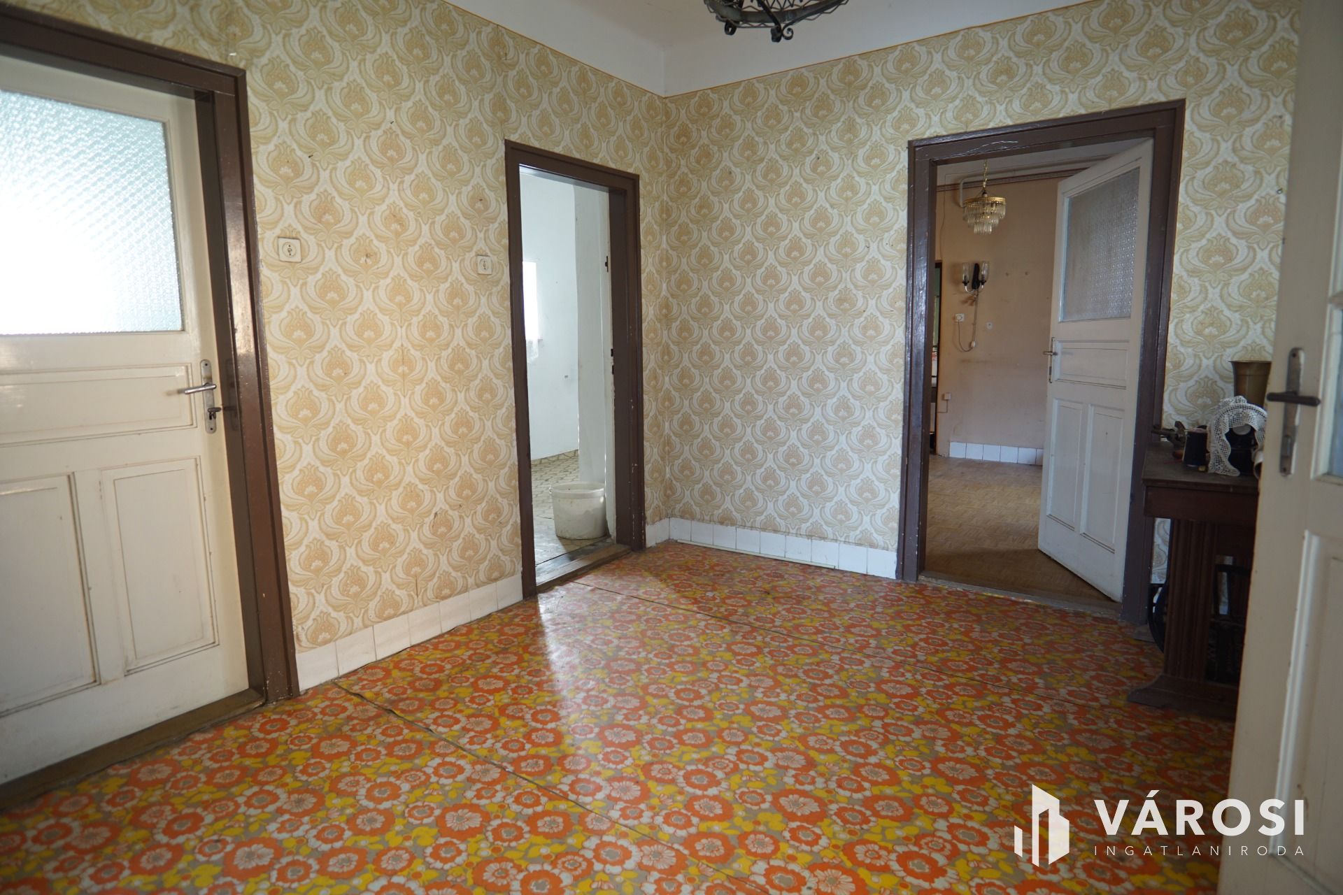 Belső lakrész helységei: 2 szoba, közlekedő, félszoba, előterasz, kamra, nappali, konyha étkező, fürdő, Wc.