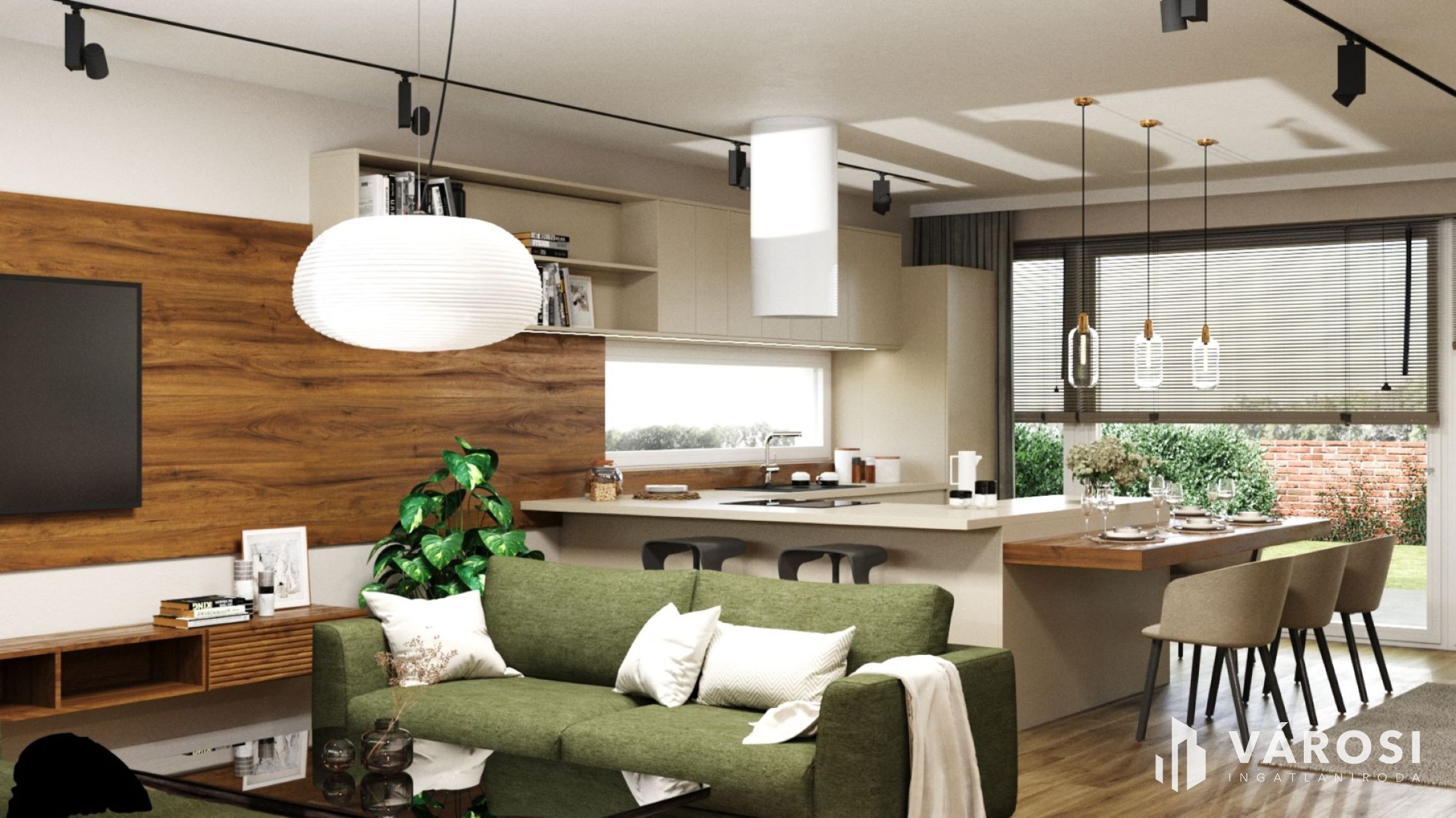 A hirdetésben szereplő látványtervek jól mutatják, milyen otthonosan berendezhető, jól élhető lakás lesz belőle.