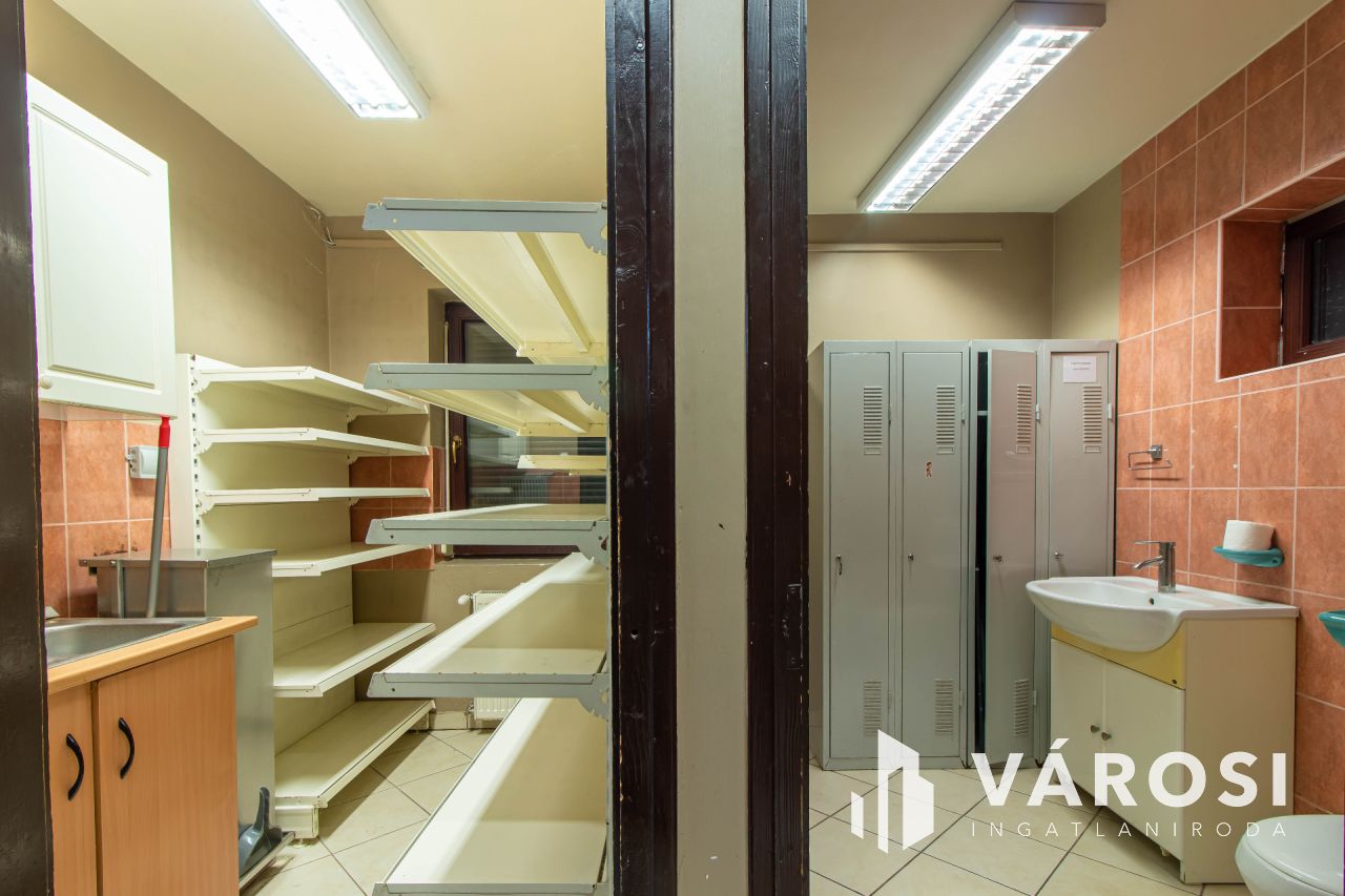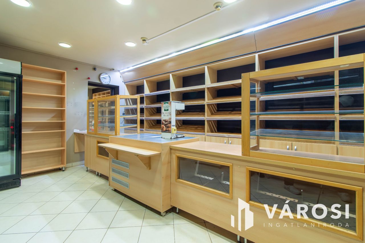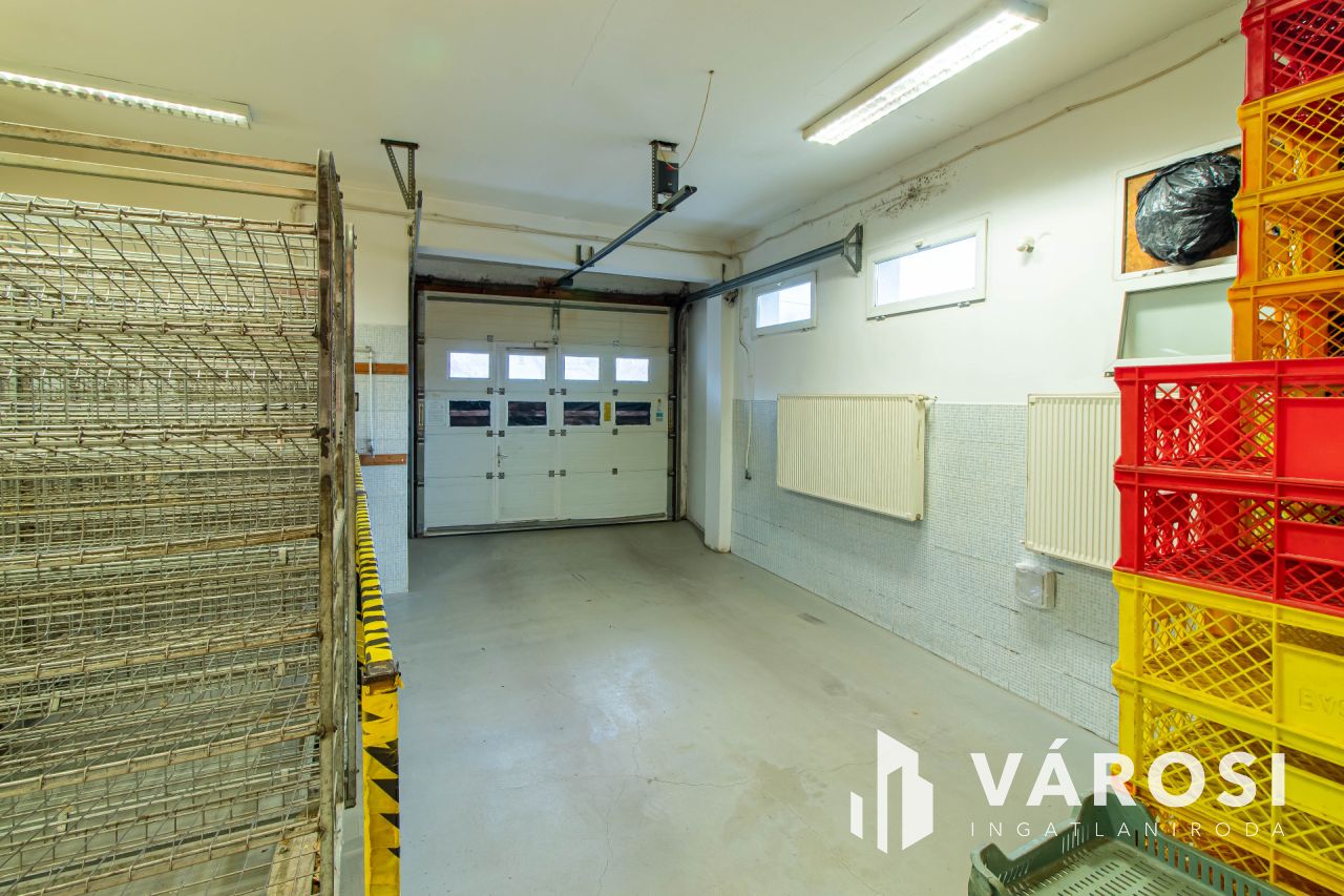 Az ingatlan üzleti része korábban 1998-tól 2024-ig pékségként működött, és teljesen elkülönített közművekkel rendelkezik a lakóingatlantól. Az utcafronti eladótér 35 m²-es, míg a pékműhely az udvar hátsó részében helyezkedik el, összesen 177 m² alapterülettel. A pékség minden szükséges helyiséggel felszerelt: iroda, termelőhelyiség, hűtőkamra, áruátvevő, szociális helyiségek és raktár is rendelkezésre áll. A működés 2024-ig folyamatosan nyereséges volt, azonban családi okok miatt a termelés megszűnt, és az ingatlan most eladó. Az üzlethelyiség kiválóan alkalmas más élelmiszeripari tevékenységre, például hidegkonyha kialakítására vagy egyéb termelésre, de raktárként, üzletként is remek lehetőségeket rejt magában.