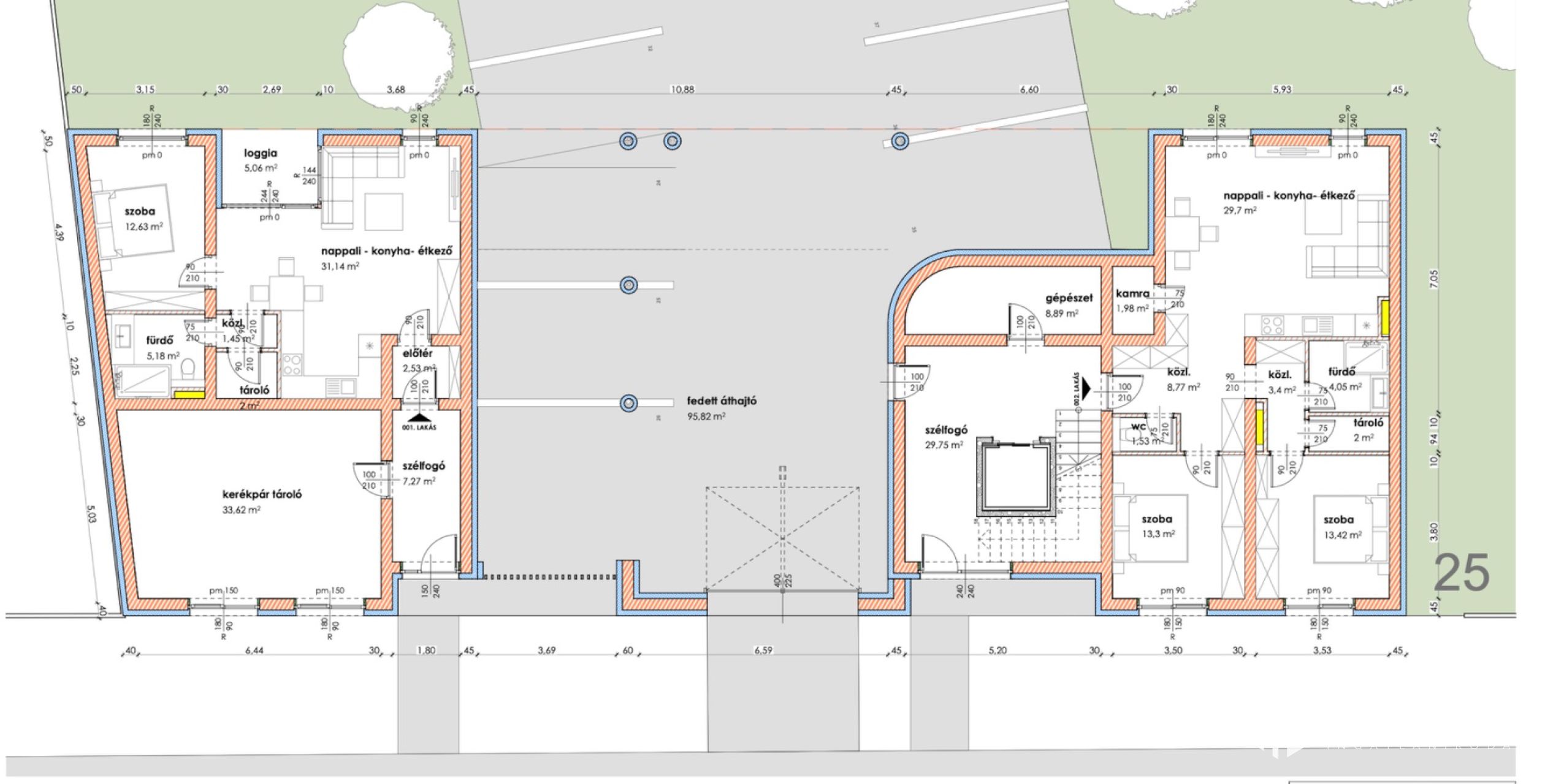 A társasház összes 46 lakásból - 2 épületben, 28 lakás Szent János tér, 16 lakás Páva utca - áll, valamint tégla falazattal, monolit födémmel, készül el.