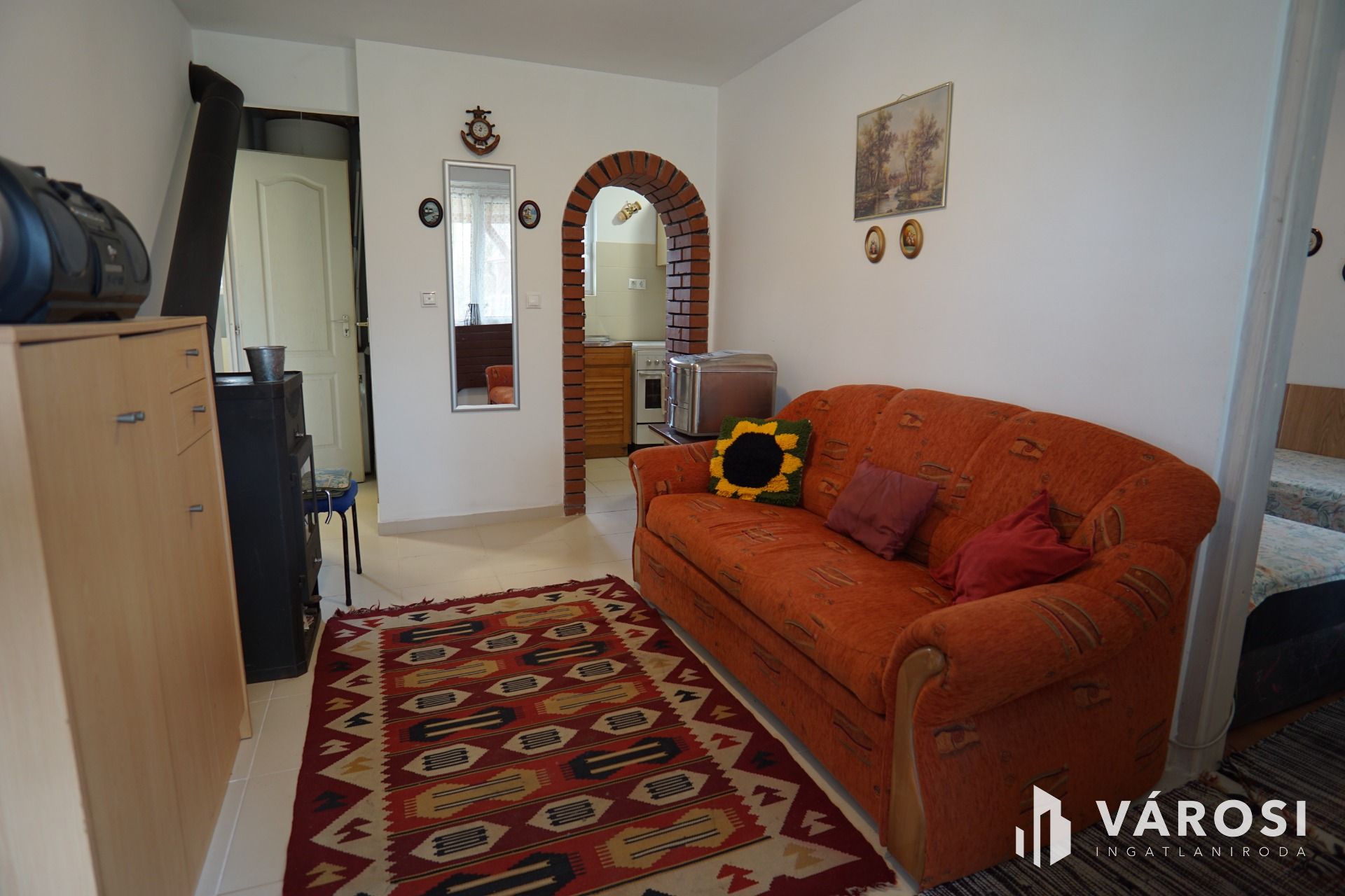 A ház melegét egy fa tüzelésű kandalló szolgáltatja, mely víz térrel is rendelkezik, így akár a központi fűtés is kialakítható. (A két szoba falában az előszerelés, csövezés elkészült a kandallóig.)
