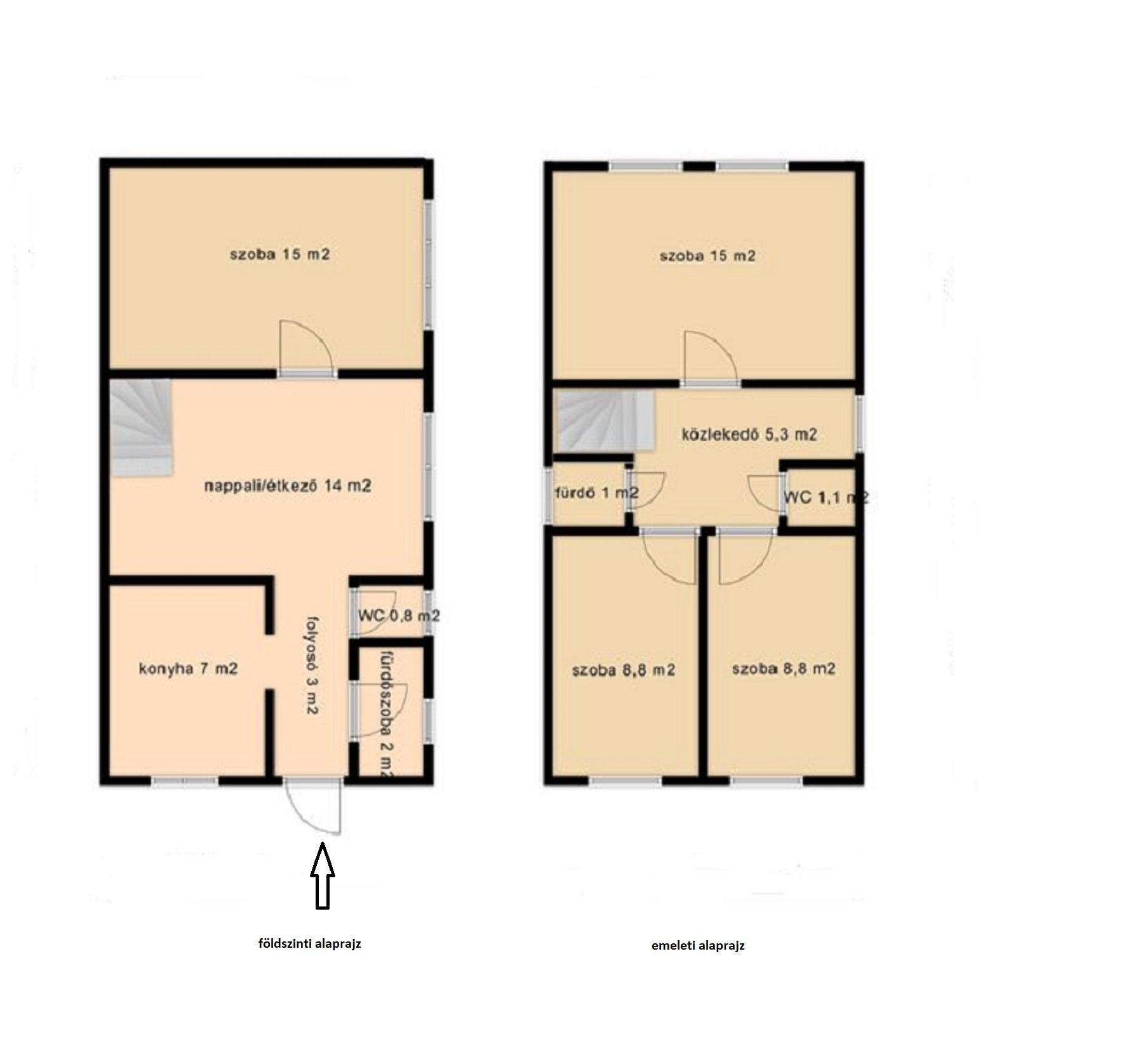 Egy egyszintes ( A épület) 95 m2 -est és egy kétszintes 82 ( B éület ) m2-est házat.