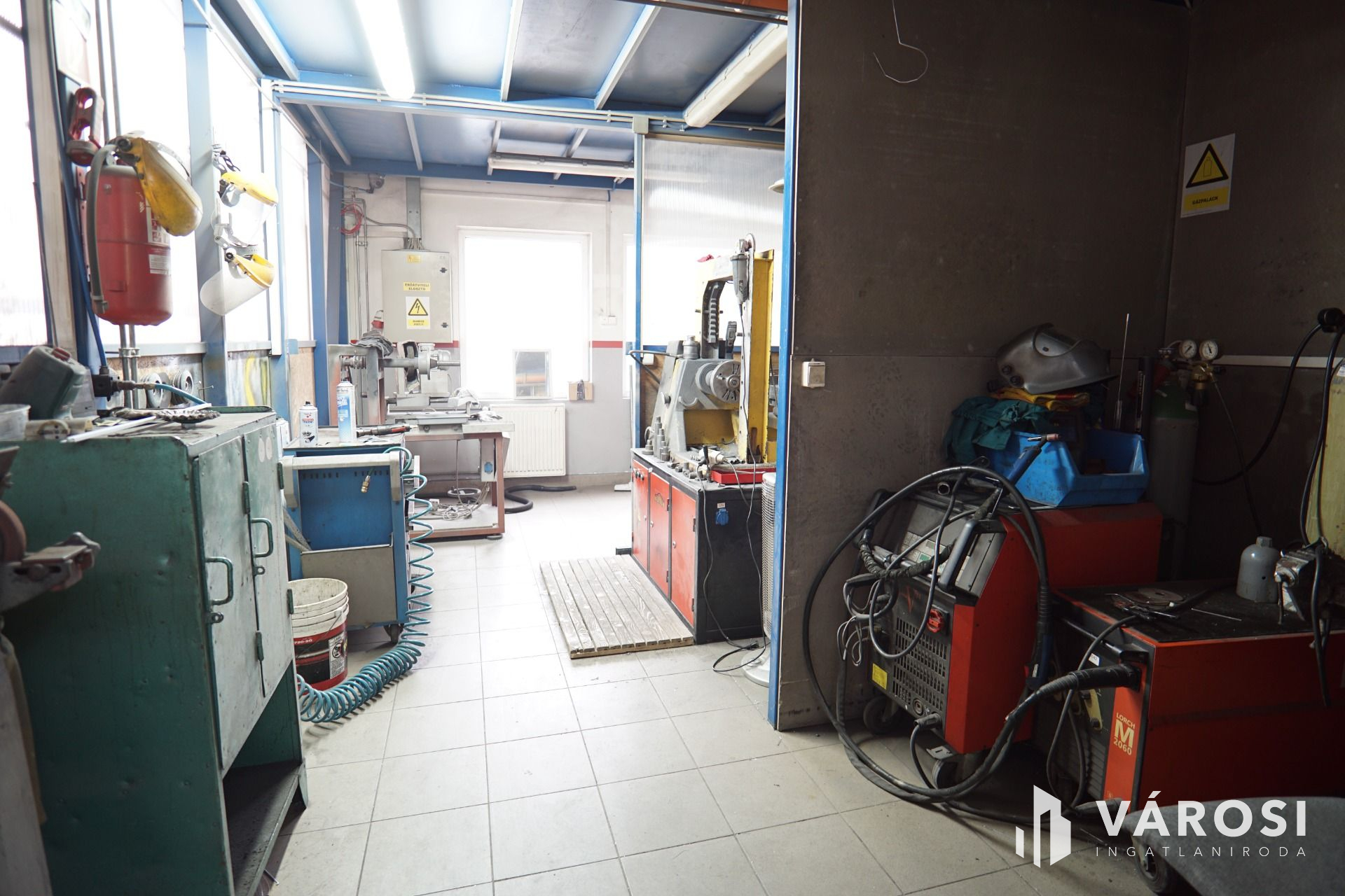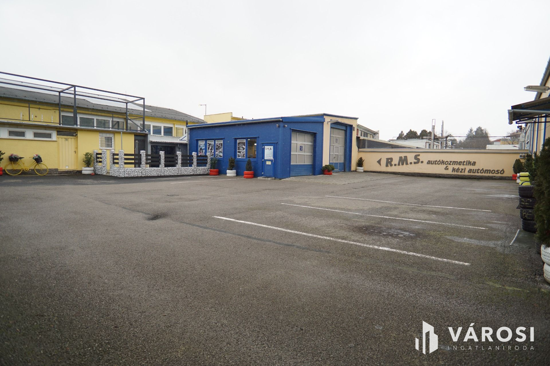 Szerviz: 4 külön beállóval rendelkező tégla épület, belső irodával, tárolóval, alkatrészmosóval, galériával valamint forgácsoló-javítórésszel. (Tulajdonos által használva).
