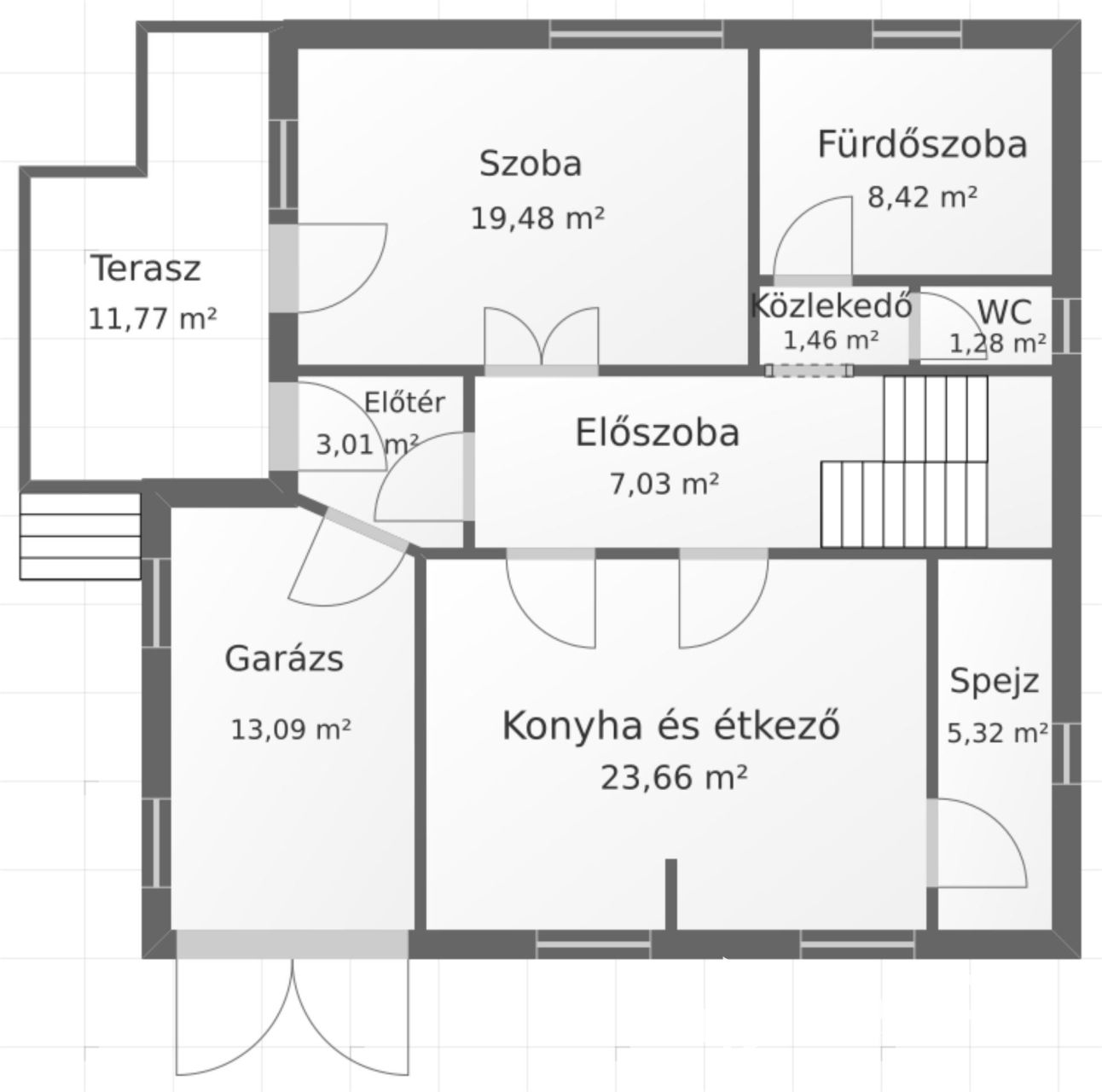 145 m²-es lakrészen található 4 szoba, melyek rugalmasan alakíthatók ki különböző funkcióknak megfelelően. A konyha és étkező, akár egy amerikai konyhás nappalivá is kialakítható. A földszinten a fürdő különáll a WC-től, valamint az emeleten is kialakítható egy fürdőszoba.
