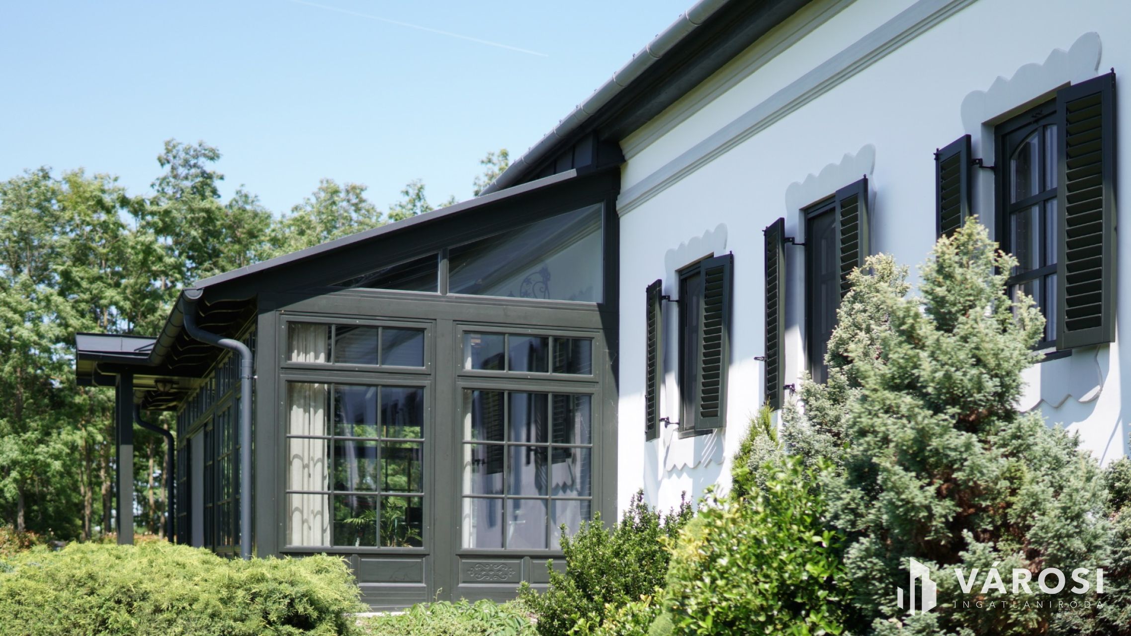 In the peaceful, tranquil setting of Zsombó, a manor house accessible via a private road and completely free from through traffic awaits its new owner. The impressive manor, built between 1903 and 1905 and meticulously renovated, offers 333 m² of living space, 4 bedrooms, 3 bathrooms, a walk-in closet, a huge living room, and a large enclosed terrace, all evoking a true aristocratic lifestyle. The residence stands on a stunning, landscaped 4,500 m² plot, which is also for sale with an additional acacia grove (3,875 m²), a 600 m² utility building, and a 667 m² private road.