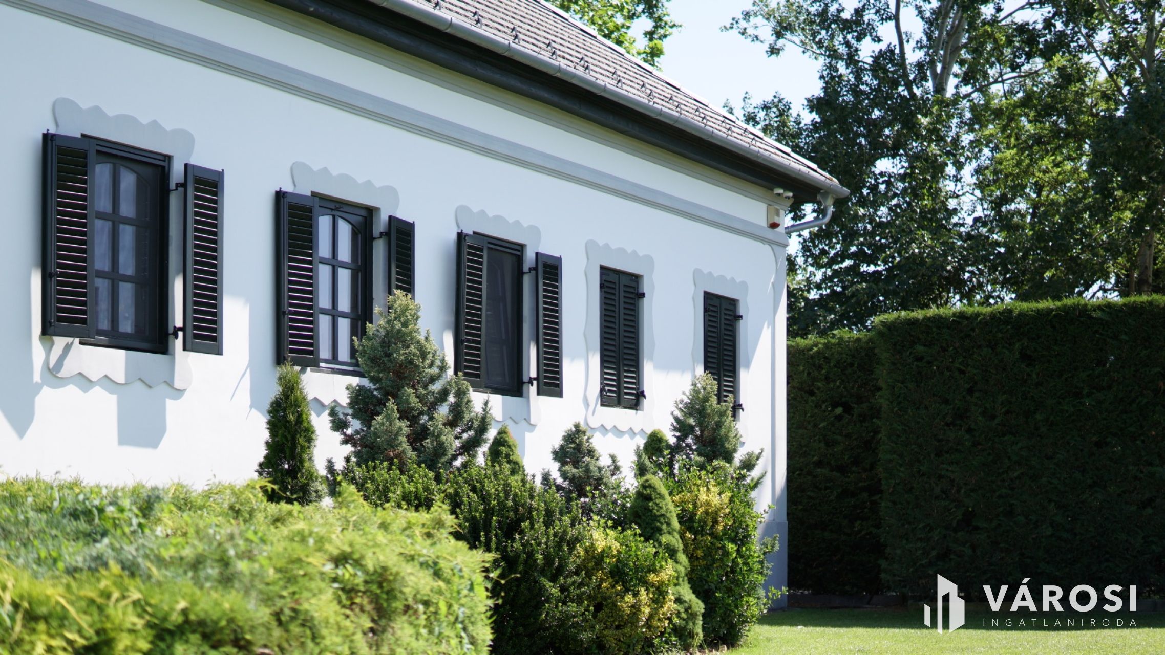 The grounds surrounding the building are fully landscaped and modernized. The atmosphere is defined by beautiful, regularly maintained plane trees and the Leyland cypress trees towering at the borders of the property, reflecting the current owner’s thoughtful care.