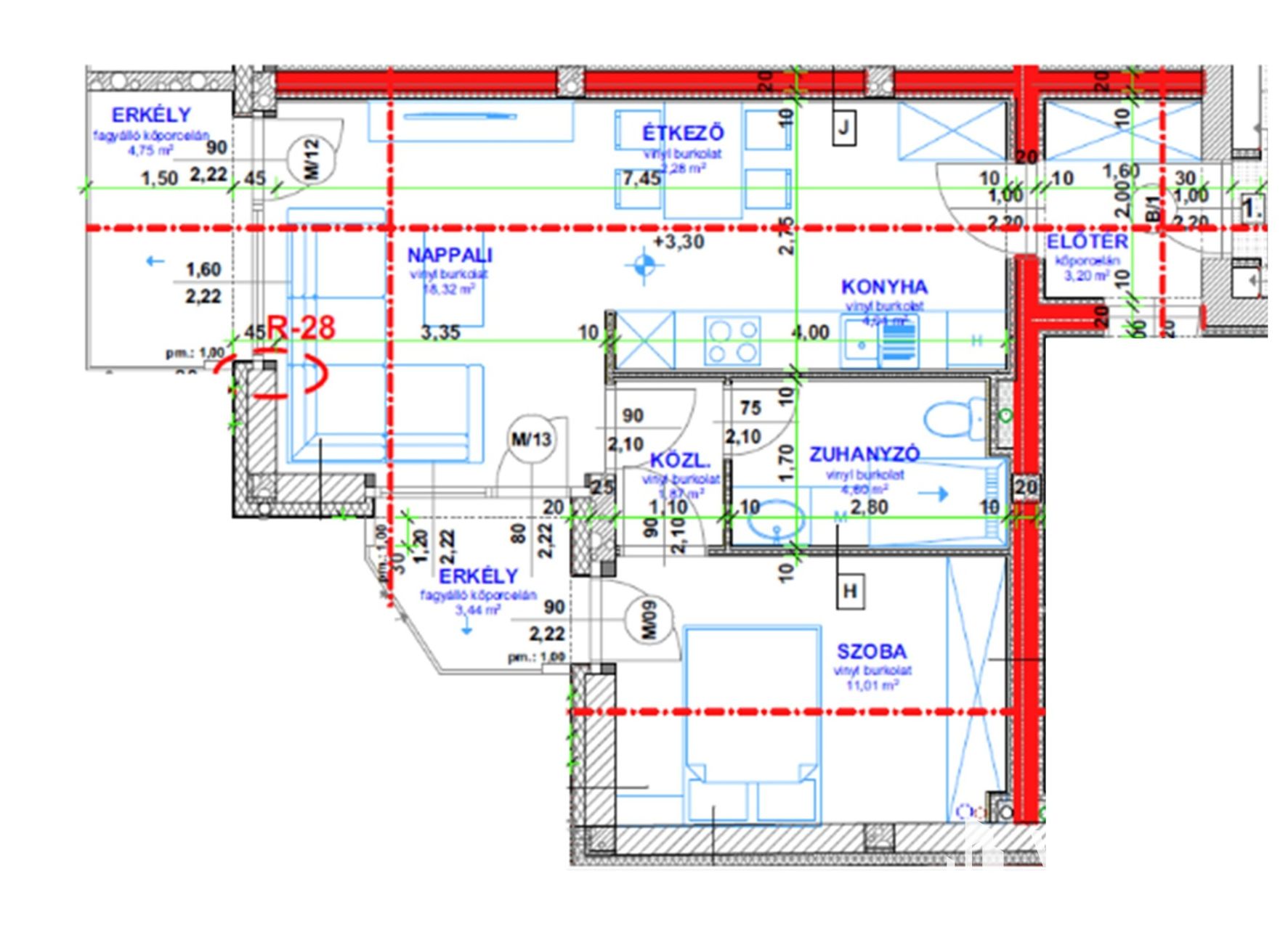 1.a Lakás 38,45 m2 +3,23 m2 (erkély)