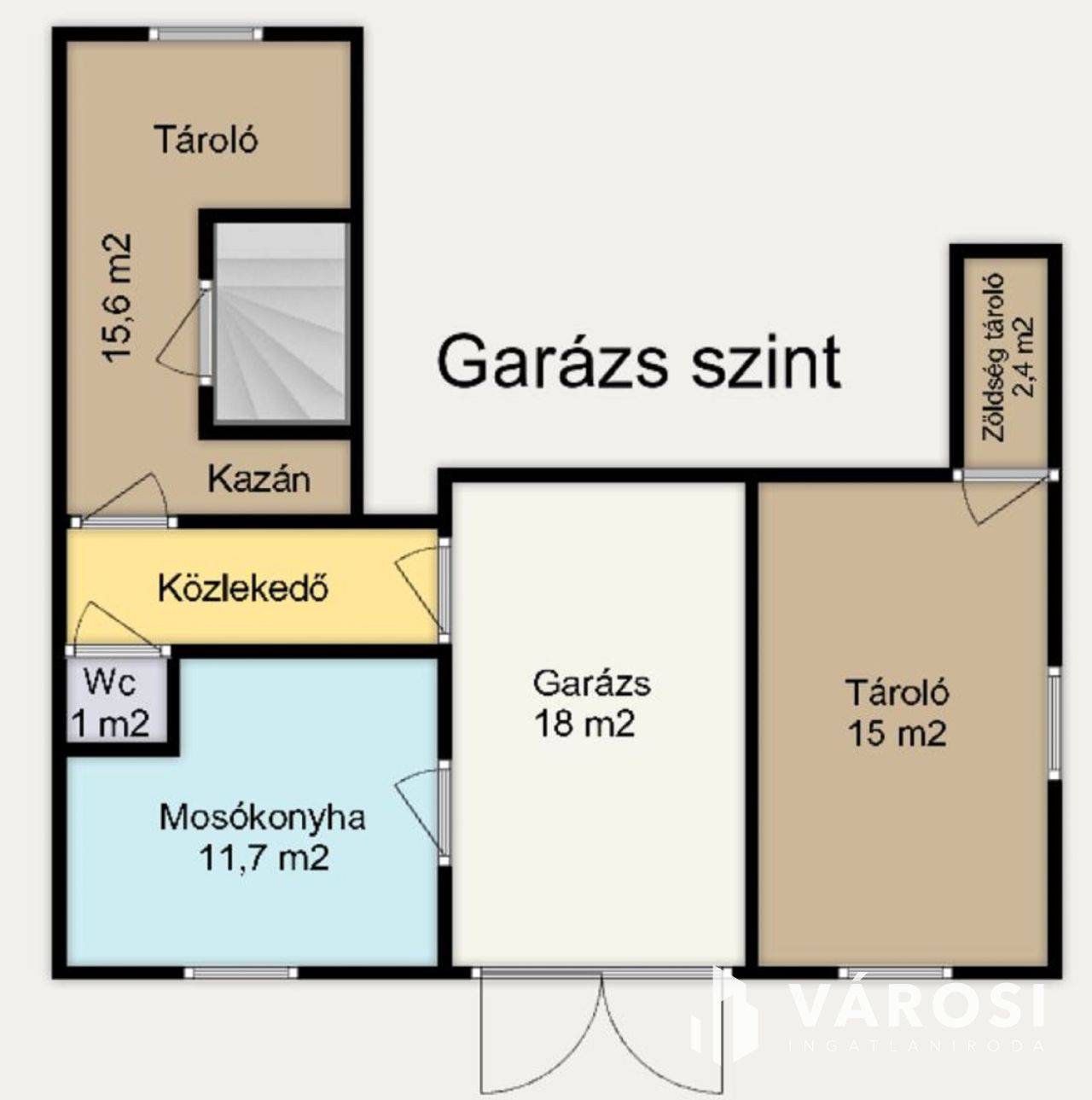 Nagy garázs, több tároló, külső pince a domb oldalában /kb. 25 m2/.
