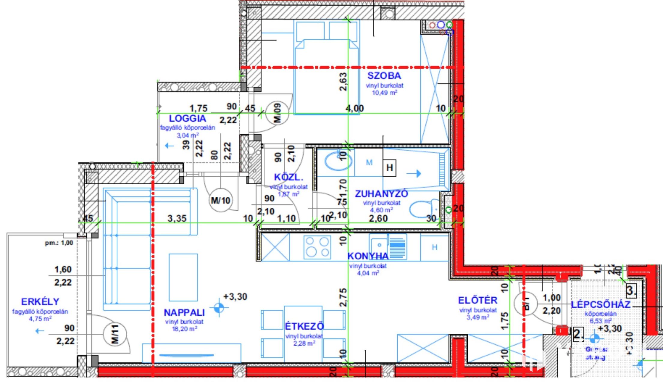 1. Lakás 82,17 m2 + 11,42 m2 (erkély)