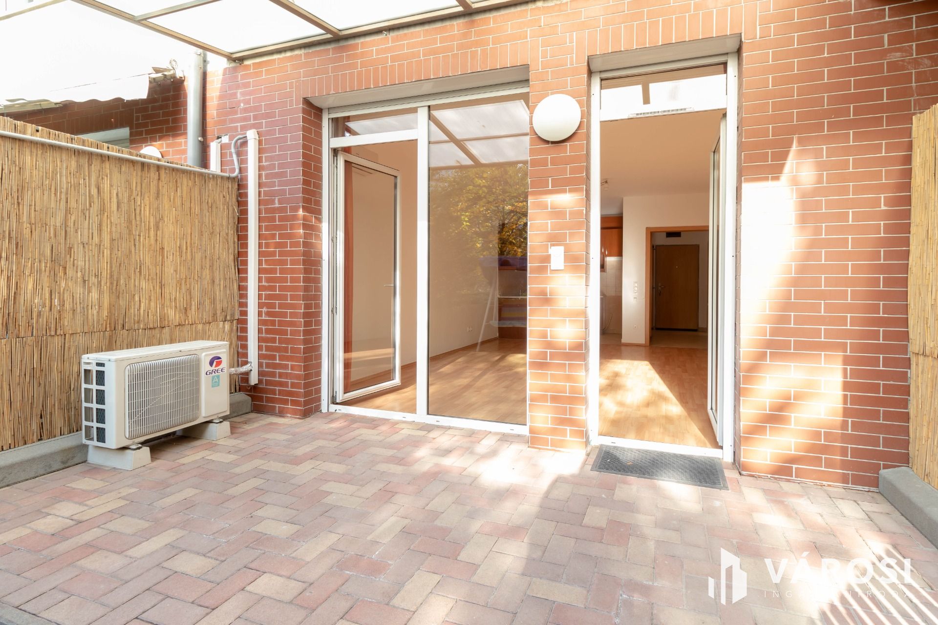 A nappali és az előtte lévő terasz és kiskert a délnyugati tájolásnak köszönhetően világos, napfényes, miközben a Gree típusú klíma gondoskodik a benti kellemes hőmérsékletről.