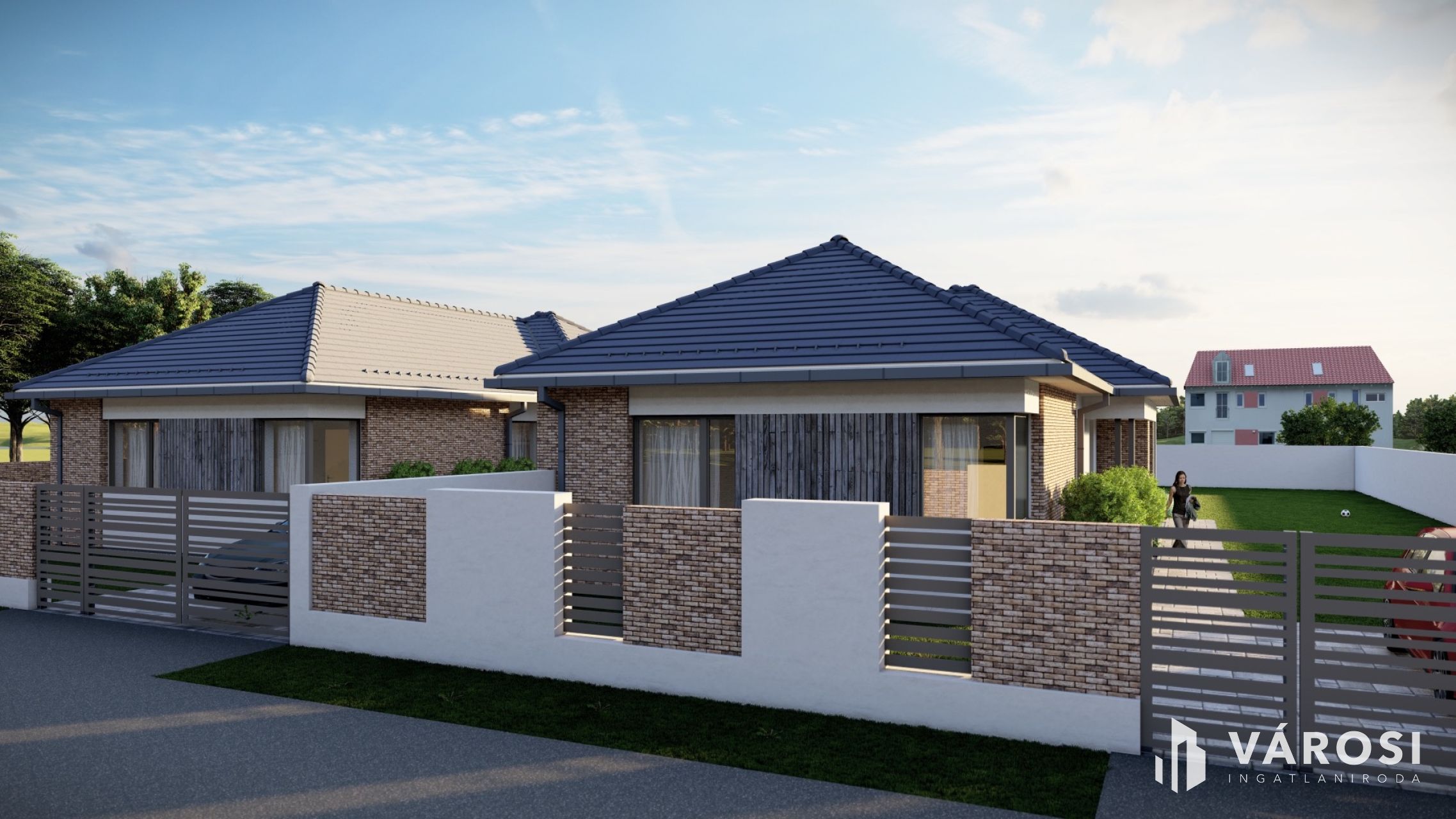 A házban tágas amerikai konyhás nappali + 3 kényelmes szoba, gardrób, valamint külön fürdő és WC kap helyet.